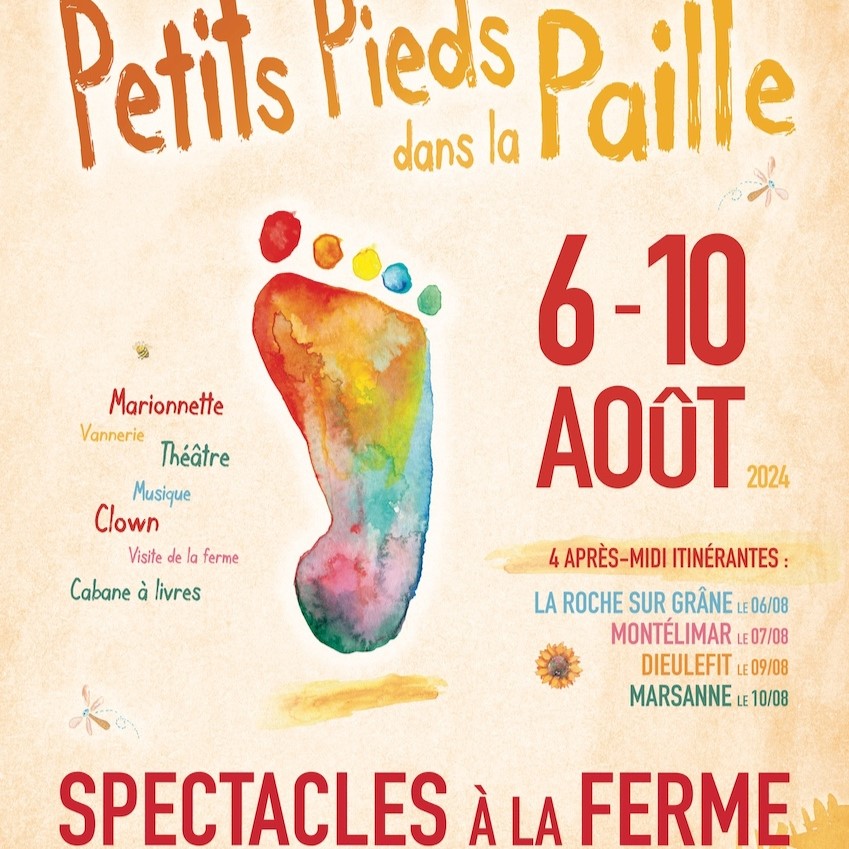 Nous sommes heureuses et heureux aux Amanins d’accueillir le festival itinérant Petits pieds dans la paille, le mardi 6 août après-midi !