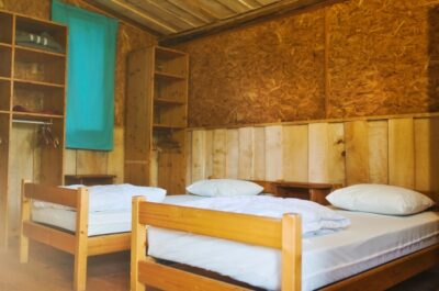 • en en chambre familiale, dans l’un de nos deux bâtiments partagés en écoconstruction